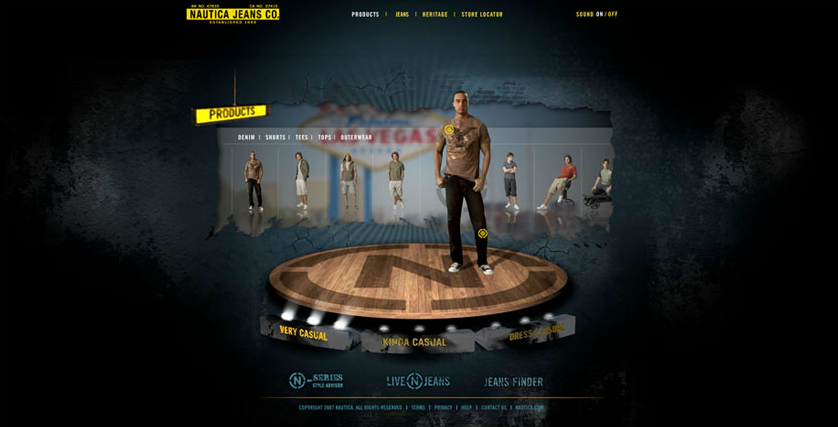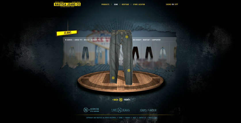 Use innovative green screen and 3-D modeling technology to show users how to perfect the art of incorporating Nautica Jeans into their wardrobe.