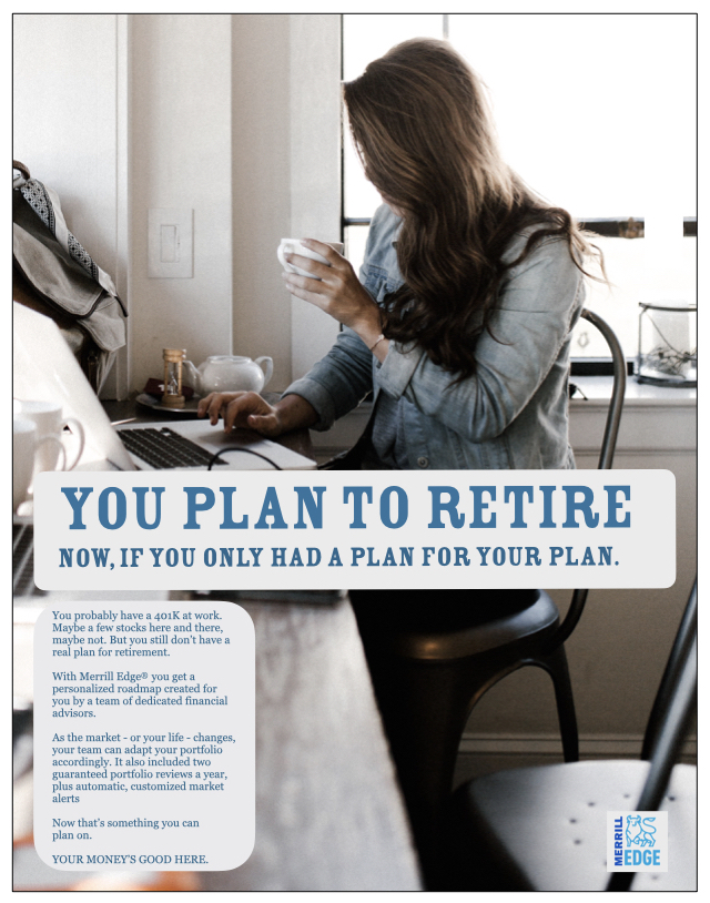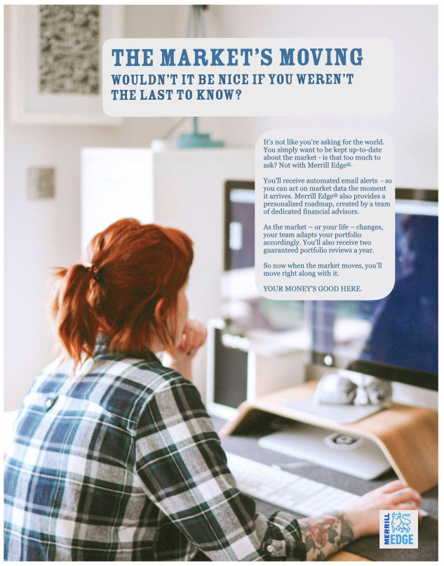 I pitched and won this account for McCann. My tagline “Your Money’s Good Here” remained the campaign platform even after I left the agency. Today, Merrill Edge has grown to over 4 million accounts and $500B+ in assets — a testament to the enduring positioning the campaign established.