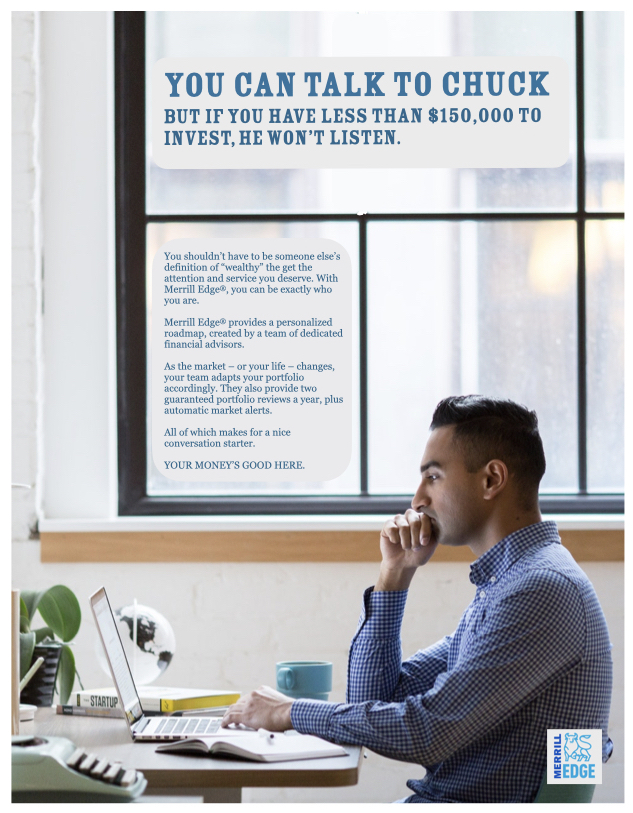 The “Your Money’s Good Here” campaign repositioned Merrill as accessible and inclusive, emphasizing low barriers to entry, including commission-free ETF, stock, and options trading, financial incentives for qualifying new accounts, and a broader message that Merrill’s expertise is available to everyday investors — not just high-net-worth individuals.