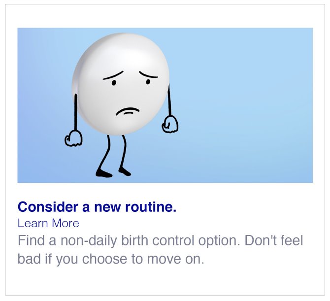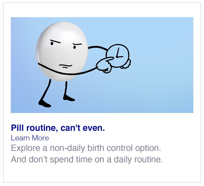 Given the challenge to drive awareness of the brand given the tight FDA regulations and Facebook advertising guidelines, these units “reminder ads” for Kyleena played an important role in our launch creative.